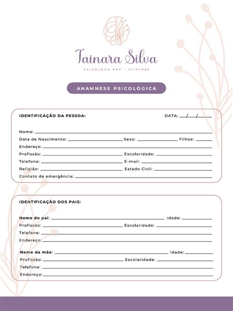 Ficha de Anamnese - Psicologia Infantil - Arquivo Digital. 1. Anamnese Adulto Paciente Completa - Anamnese Adulto Data: - Studocu. Psicóloga - Papelaria Completa. Ficha Anamnese Psicólogo 27115 - MultixPrint.