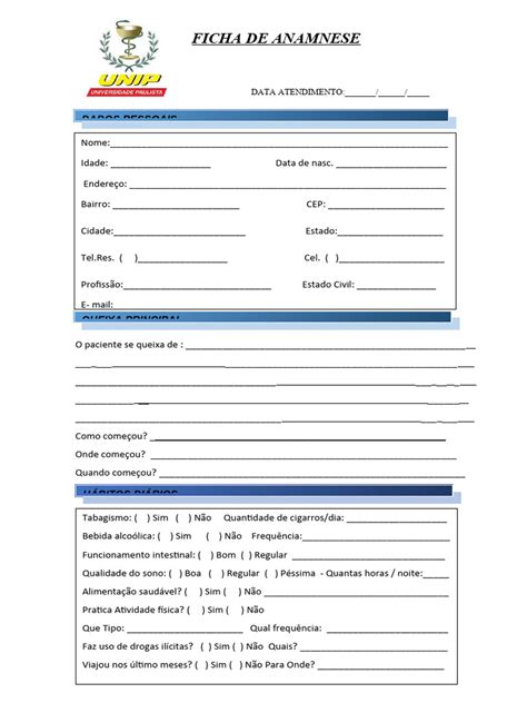 Download Arquivo Ficha De Anamnese X8 CDR