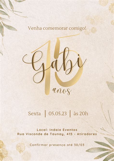 DownloadConvite aniversário 15 anos floral - rosa com dourado - Edite grátis ...