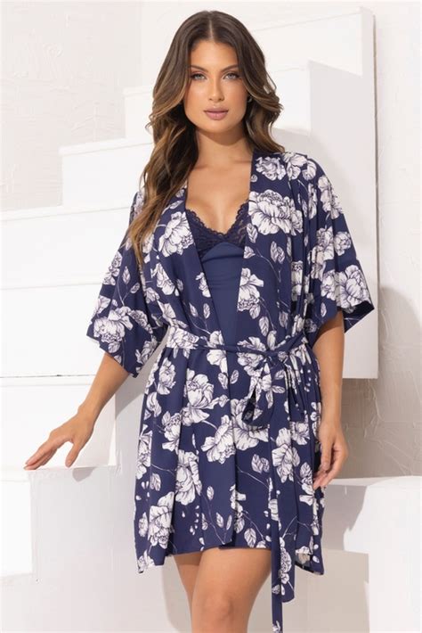 Camisola feminina cetim floral com robe . Conjunto 2 peças luxo, alças ajustáveis. Compre agora em promoção!
